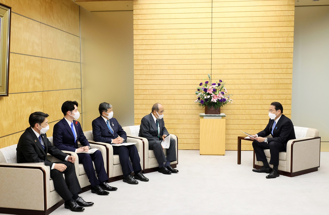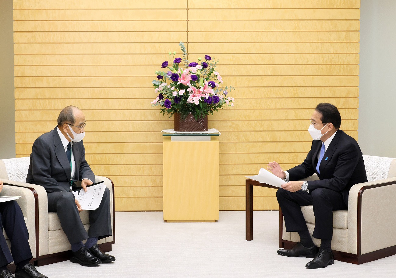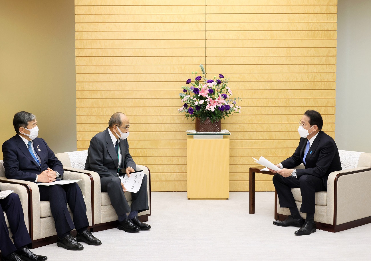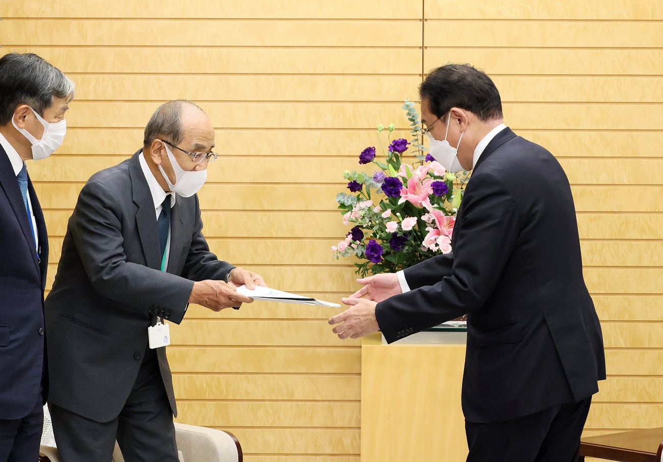 岸田总理在总理大臣官邸接受了大分县知事广濑胜贞等递交的有关宇宙的建议。