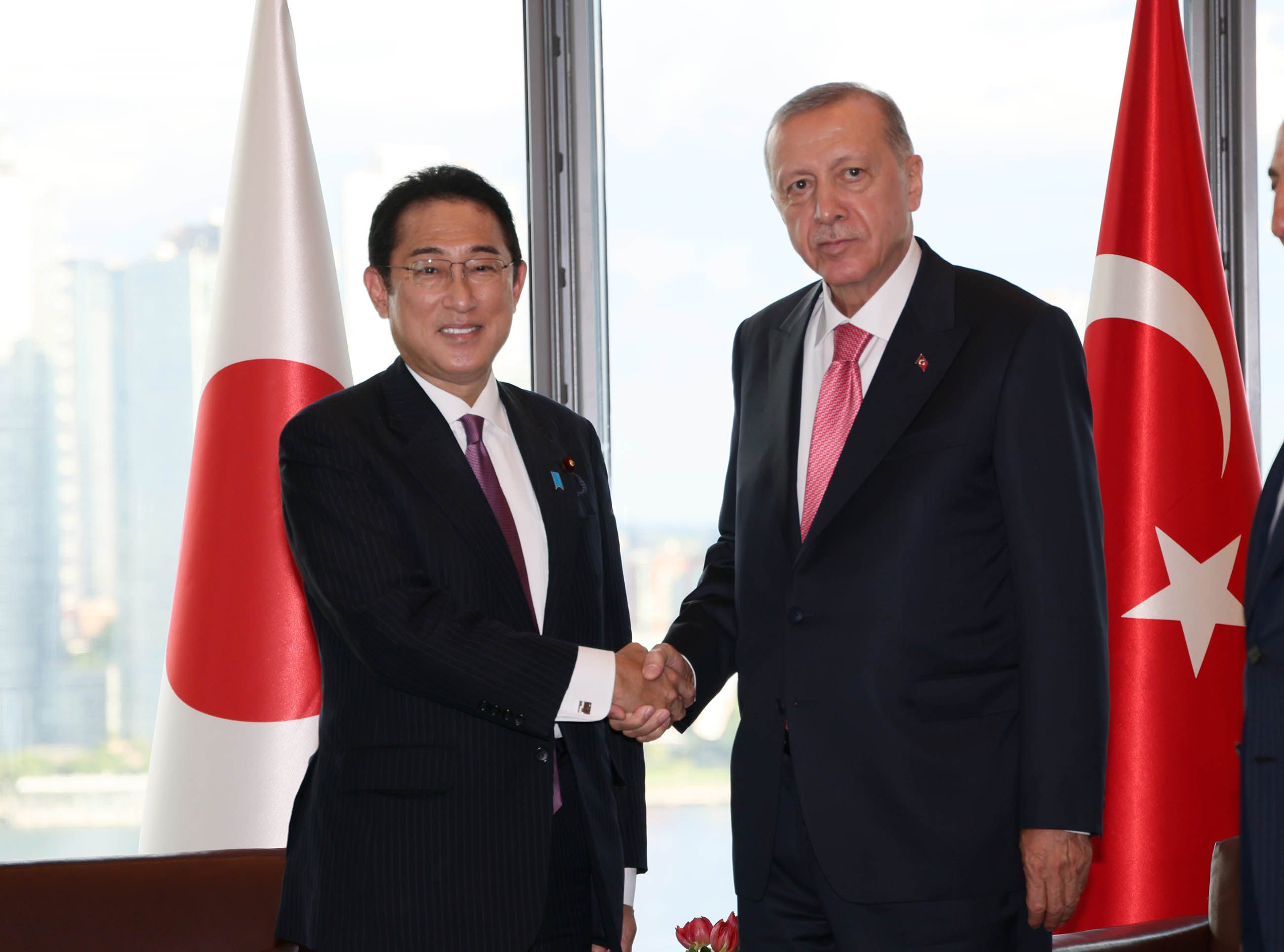 岸田首相与英国首相伊丽莎白·特拉斯(Elizabeth Truss)、土耳其共和国总统雷杰普·塔伊普·埃尔多安(Recep Tayyip Erdogan)举行会谈。之后,在联合国大会会议厅进行了一般性辩论演讲。