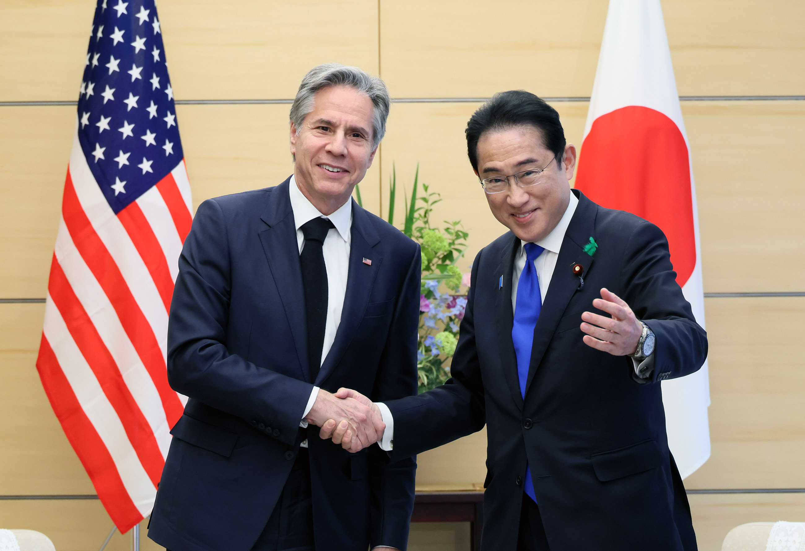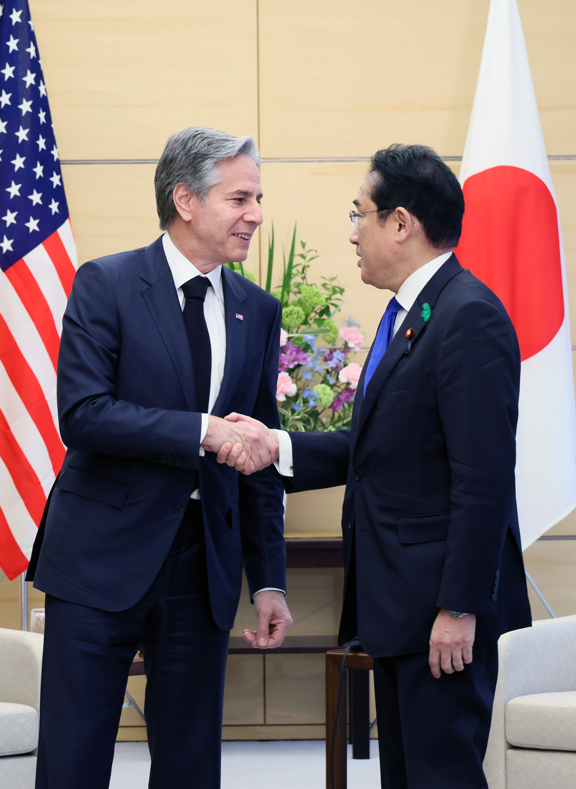 2023年4月18日,岸田首相在官邸接受了美利坚合众国国务卿安东尼·布林肯(Honorable Antony Blinken, Secretary of State of the United States of America)的拜会。