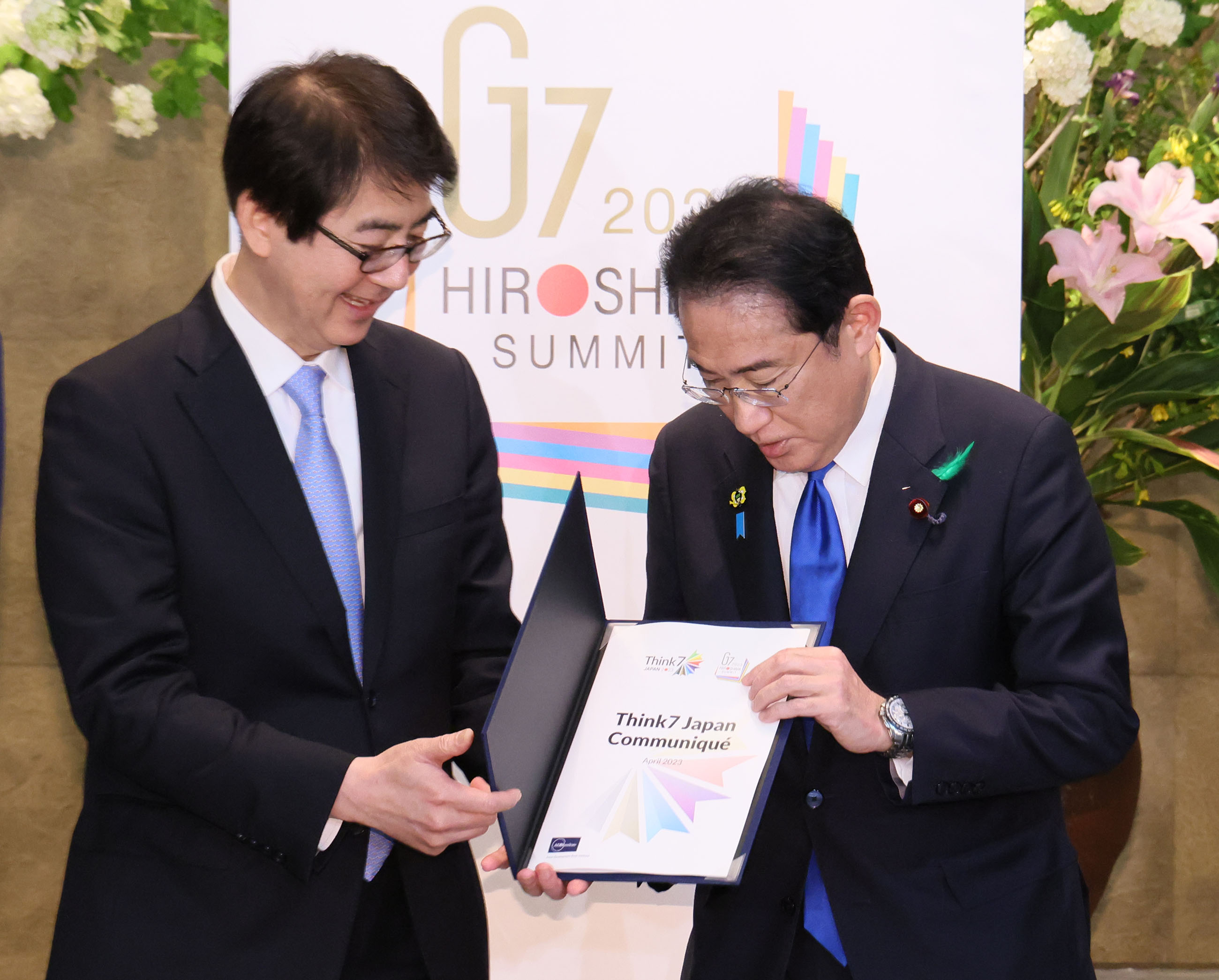 2023年4月28日,岸田首相在官邸接受了Think7(T7)峰会代表的拜会,并接受了建议书。