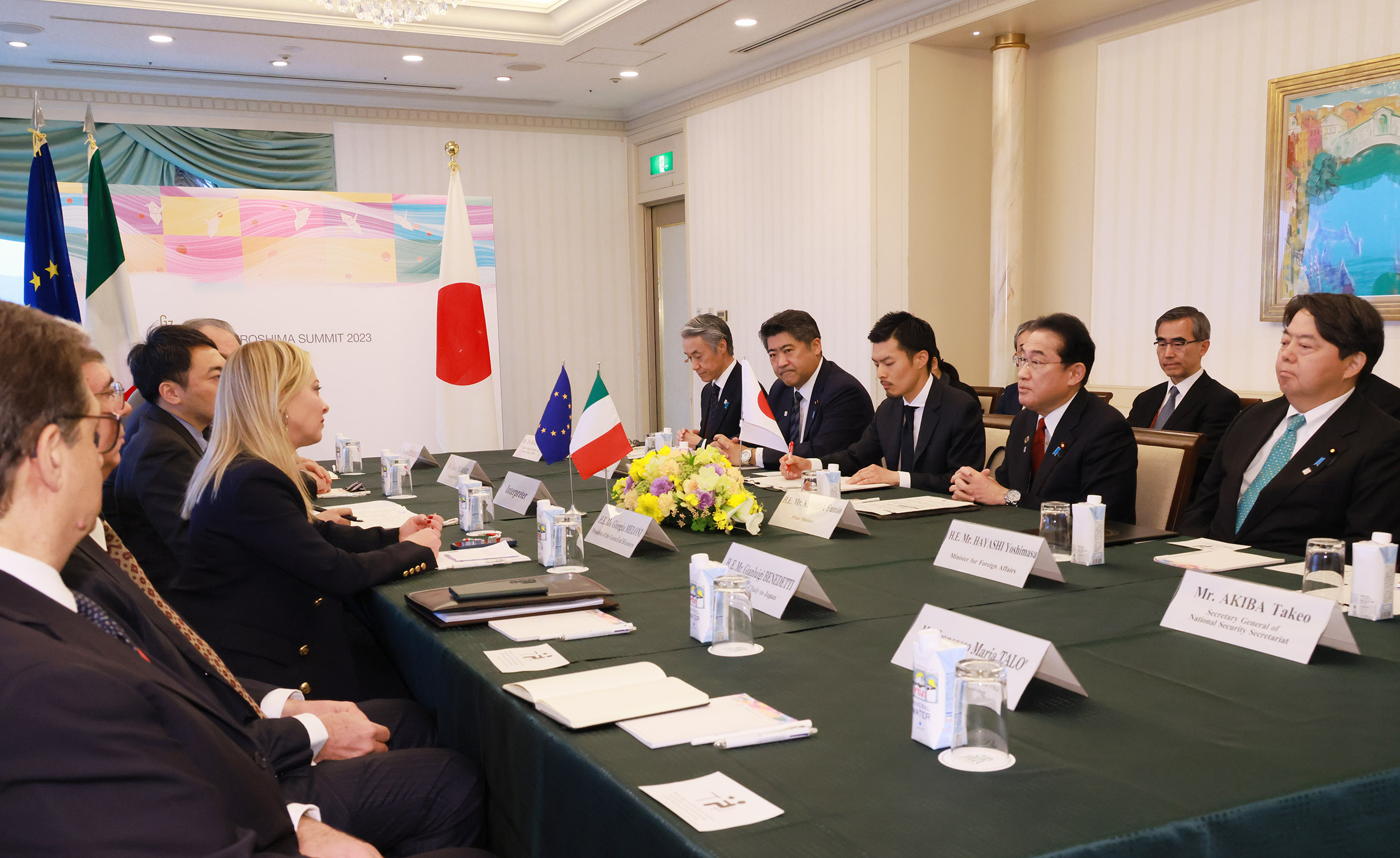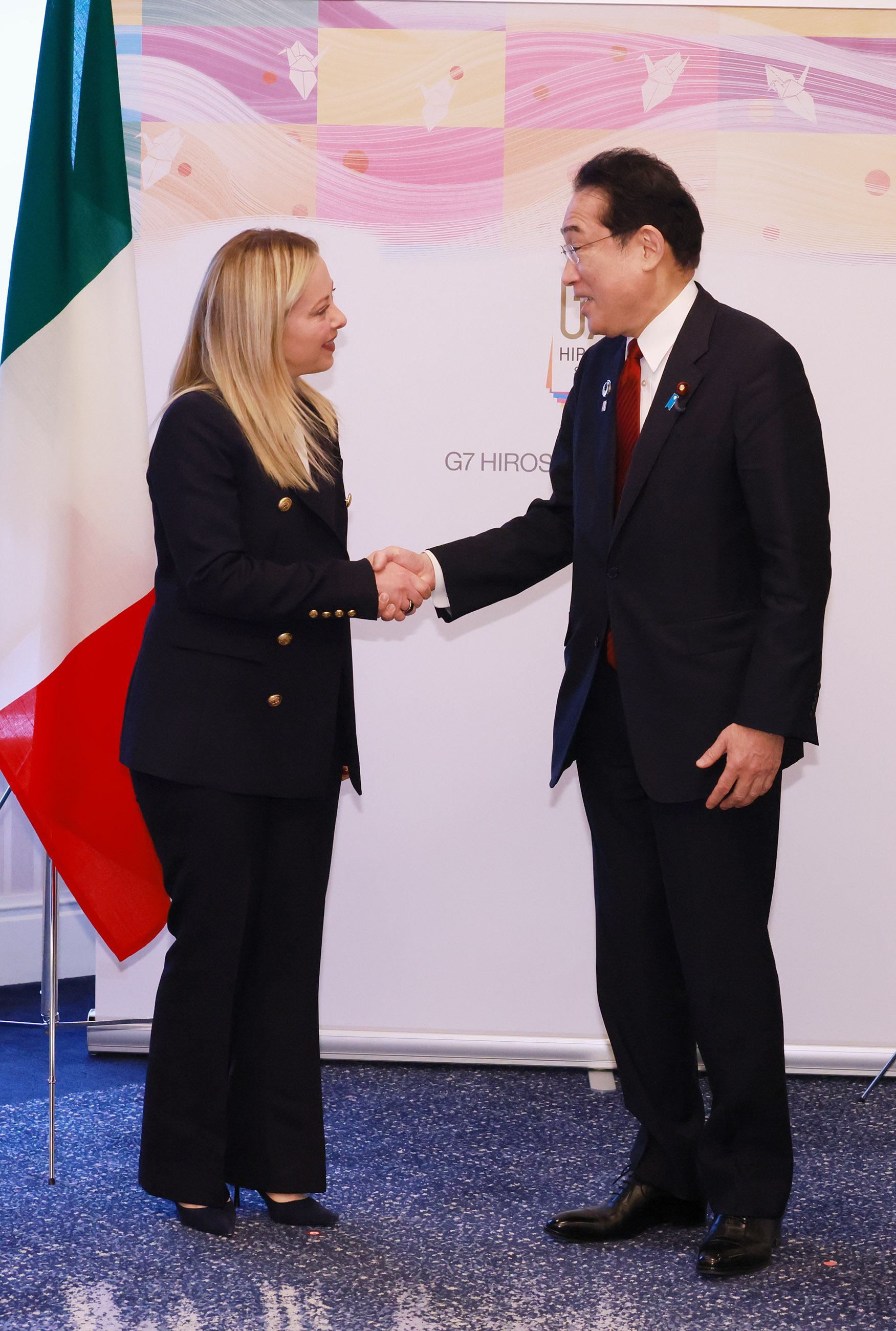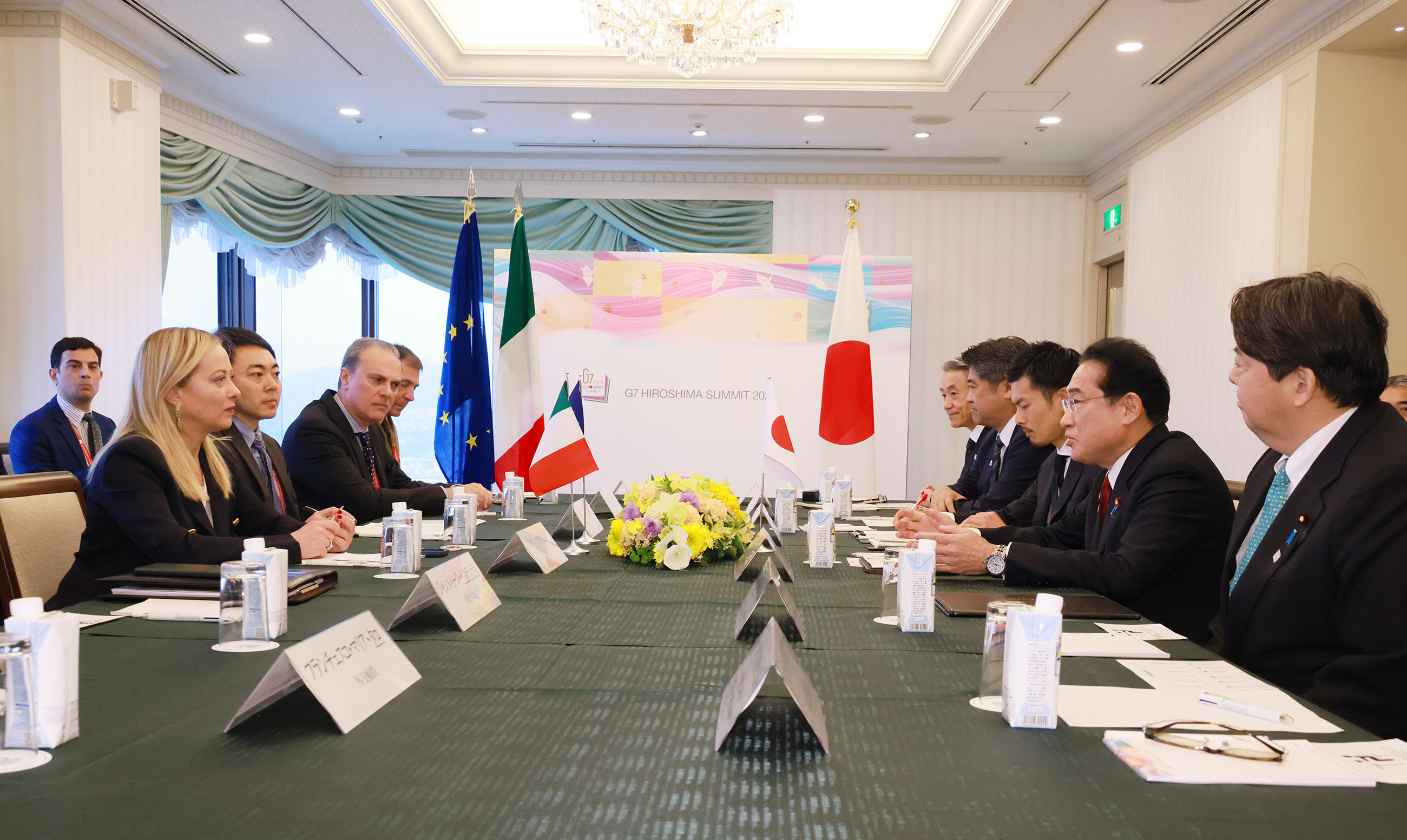 2023年5月18日,岸田首相为了召开G7广岛峰会访问了广岛县。岸田首相与意大利共和总理焦尔吉娅·梅洛尼(H.E. Ms. Giorgia Meloni, President of the Council of Ministers of the Italian Republic)举行了首脑会谈。