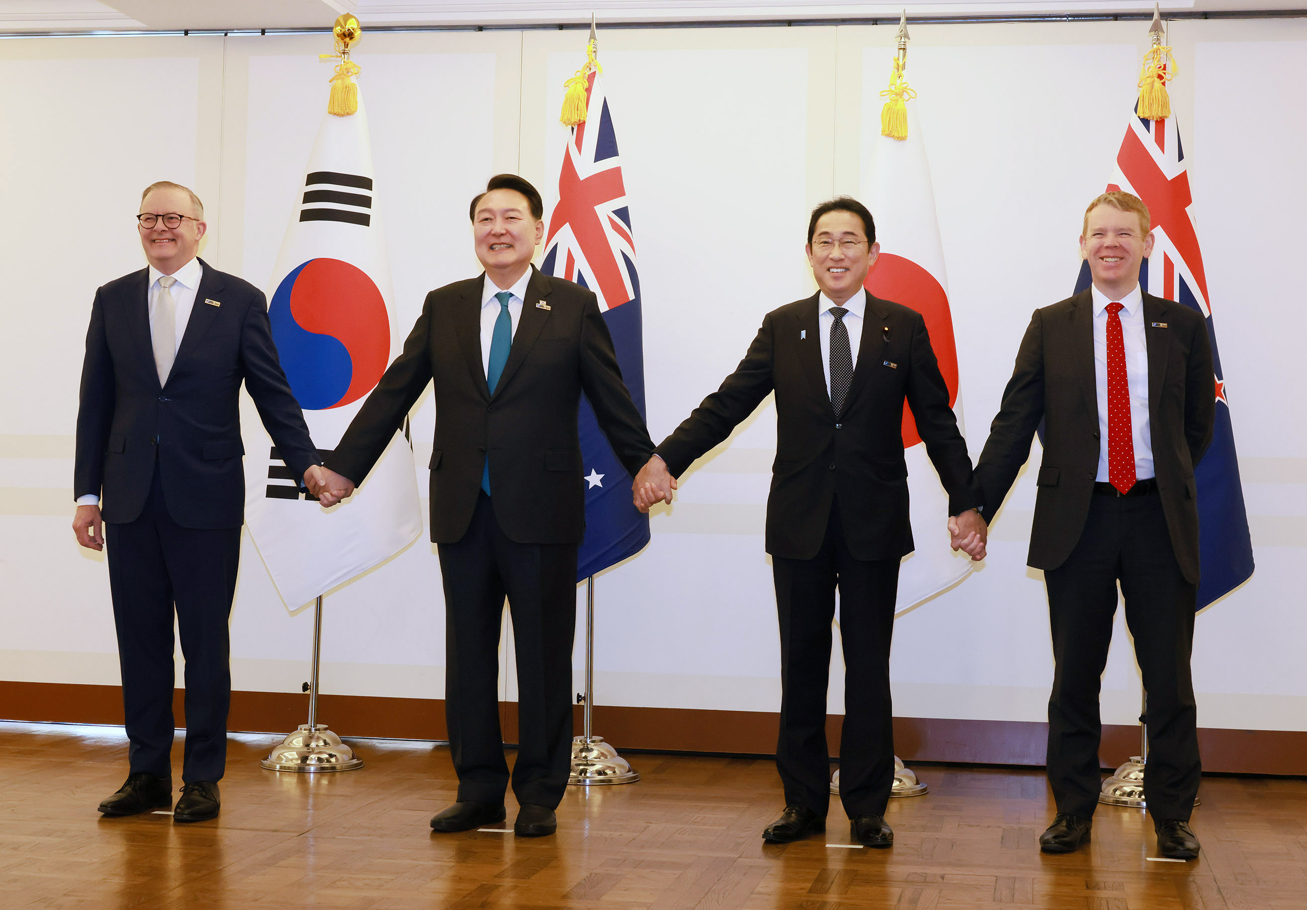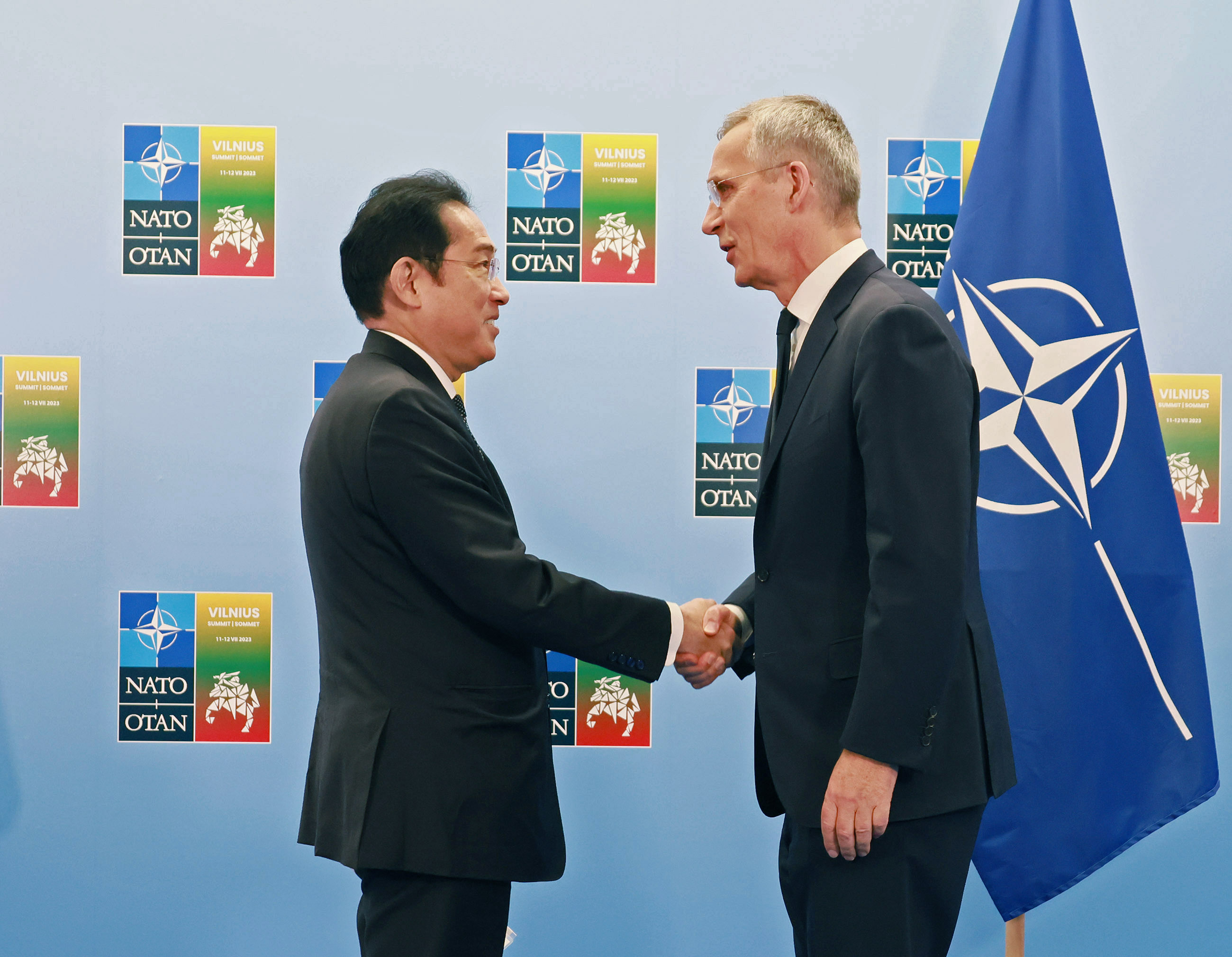 2023年7月12日(当地时间),为出席北大西洋公约组织(NATO)峰会,正在访问立陶宛共和国维尔纽斯的岸田首相,与澳大利亚联邦总理安东尼·阿尔巴尼斯(The Hon. Anthony Albanese)、新西兰总理克里斯・希普金斯(Rt Hon. Chris Hipkins)、大韩民国总统尹锡悦(H.E. Mr. Yoon Suk Yeol)举行北约亚太合作伙伴(AP4)首脑会议,然后与北约秘书长延斯·斯托尔滕贝格(H.E. Mr. Jens Stoltenberg)举行联合新闻发布会,并进行了会谈。随后,首相与北约亚太合作伙伴首脑、北约秘书长合影留念,接着出席了北约峰会。然后与立陶宛共和国总理因格里达·希莫尼特(H.E. Ms. Ingrida ŠIMONYTĖ)共进工作午餐。