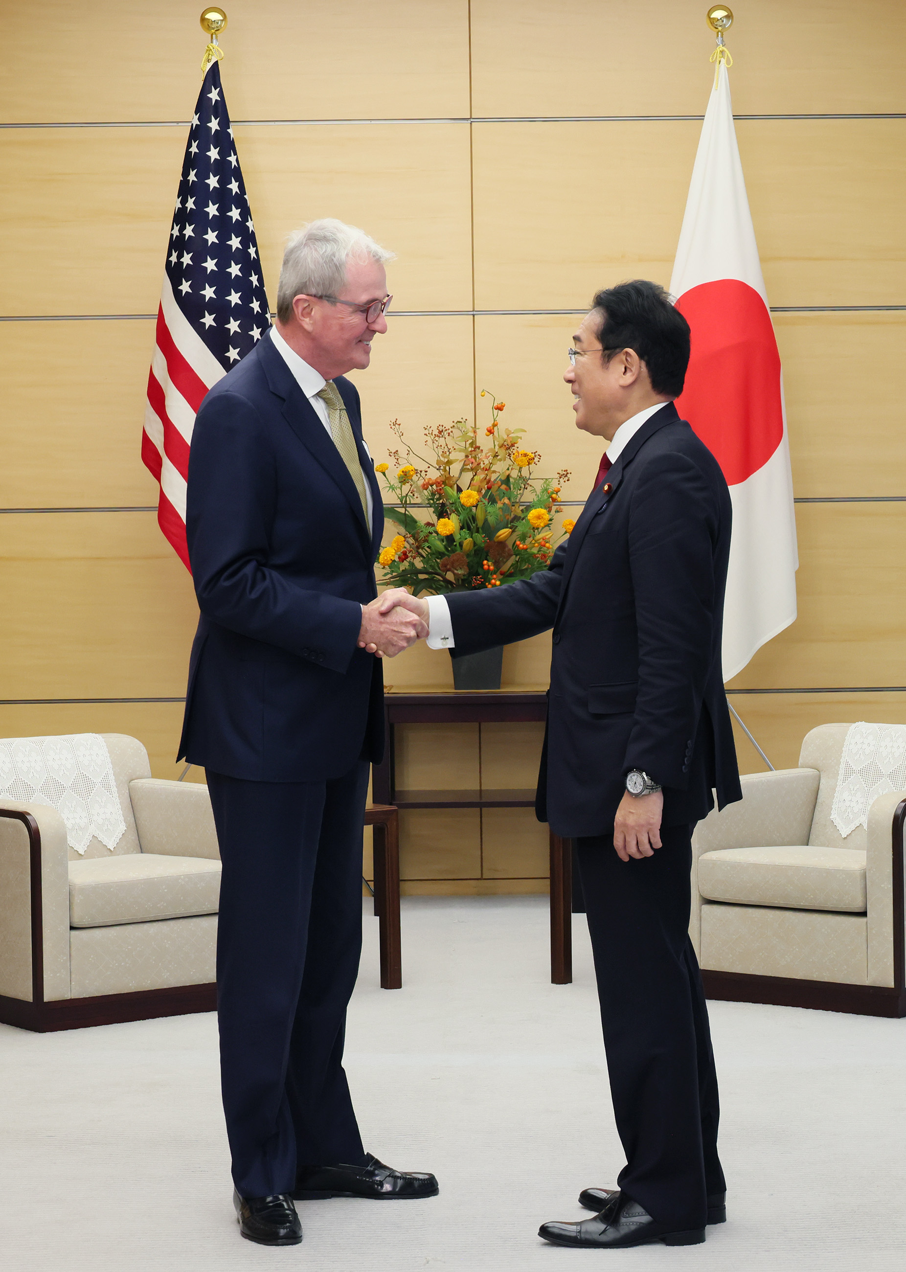 #外交安全保障 会见美国纽泽西州州长菲尔・墨菲 2023年 10月 17日 (周二) 发推 (暂译) 2023年10月 17日,岸田首相在官邸接受了美国纽泽西州州长菲尔・达顿・墨菲(Philip D. Murphy)的拜会。 更多