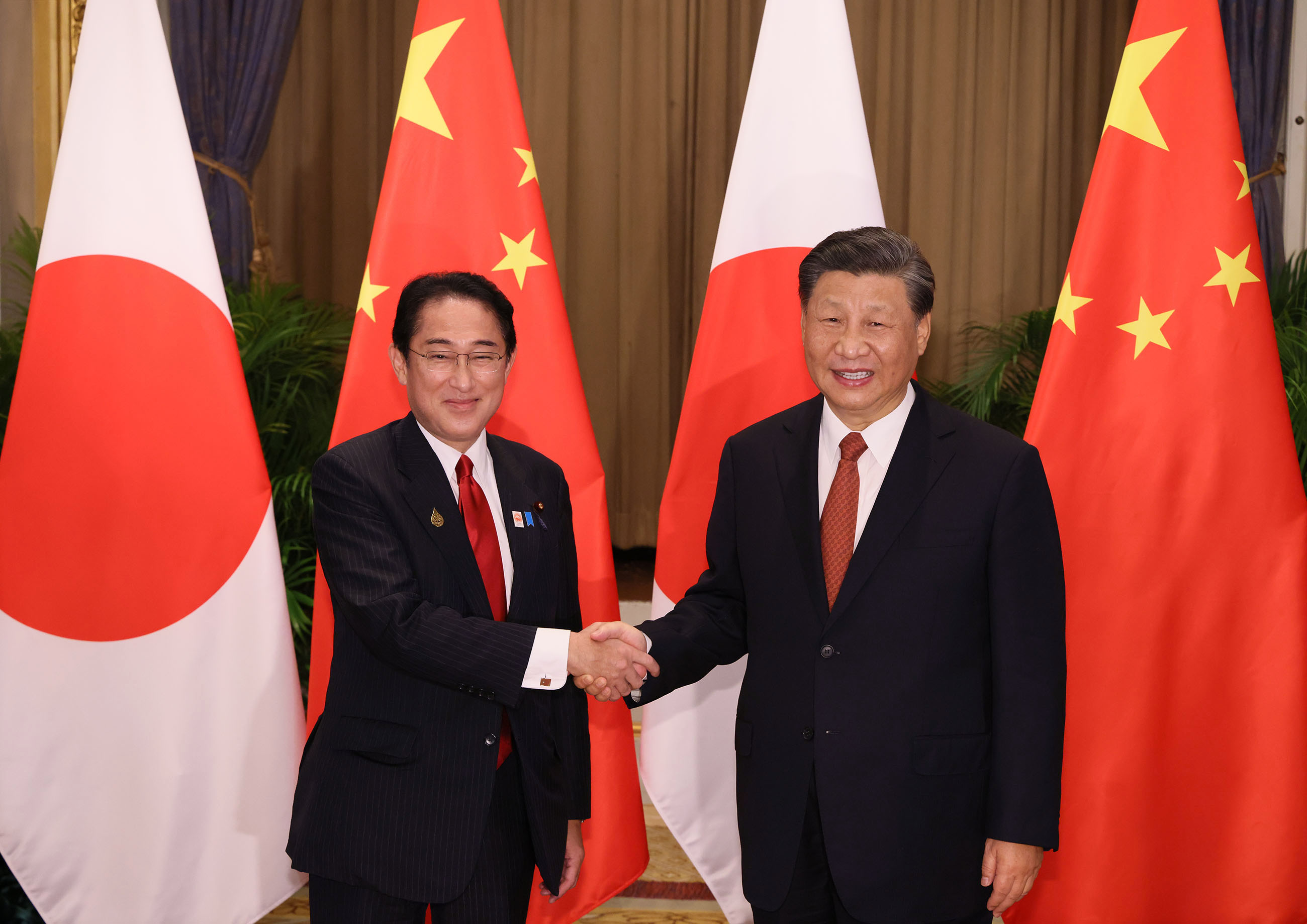 为出席亚太经合组织(APEC)首脑会议,正在泰国访问的岸田首相从当地时间11月17日18时40分(日本时间20时40分)起,与中华人民共和国习近平主席举行了首次面对面首脑会谈,历时约45分钟。会谈概要如下: