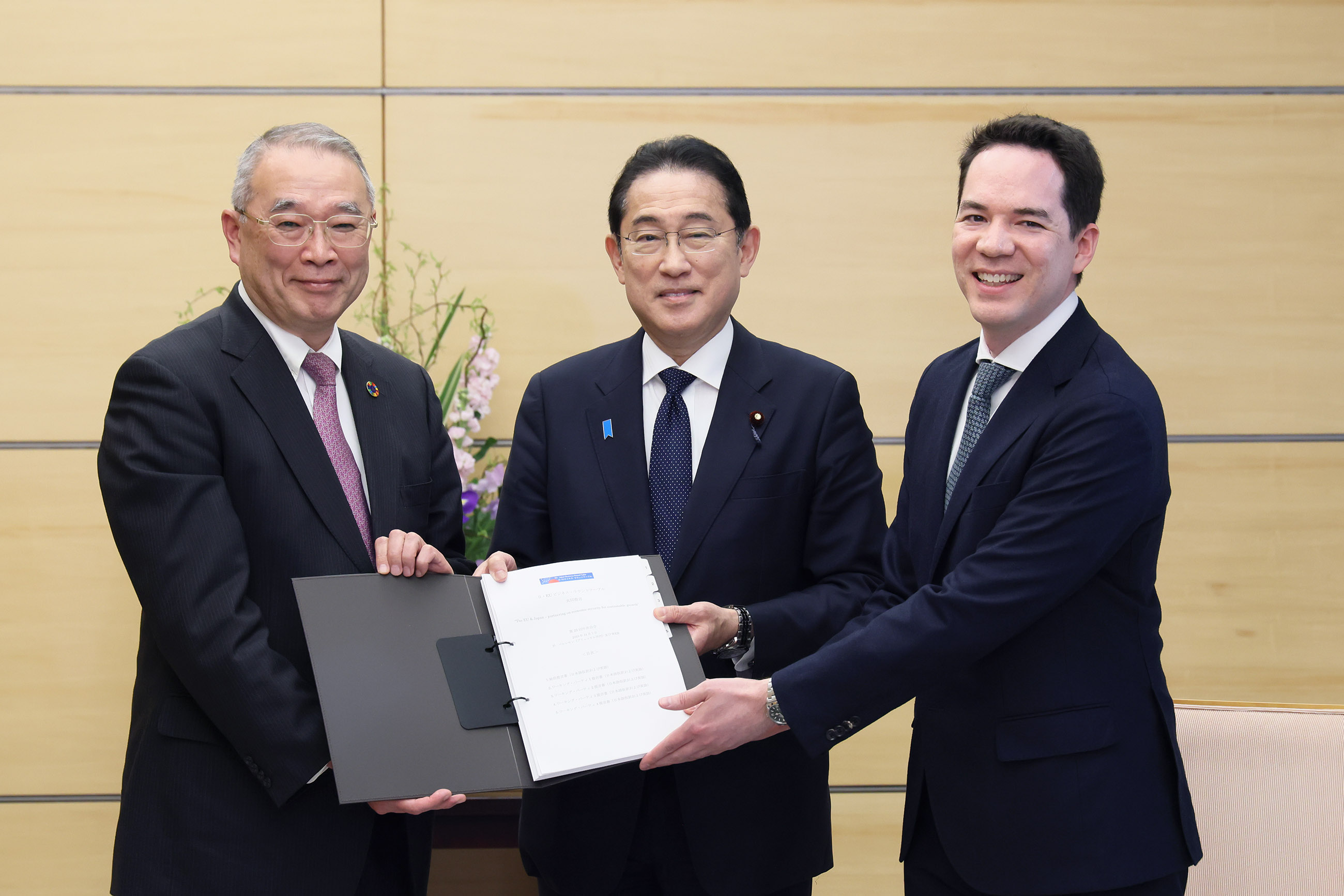 会见日本・欧盟商业圆桌会议(BRT)联合议长远藤等并接受建议书